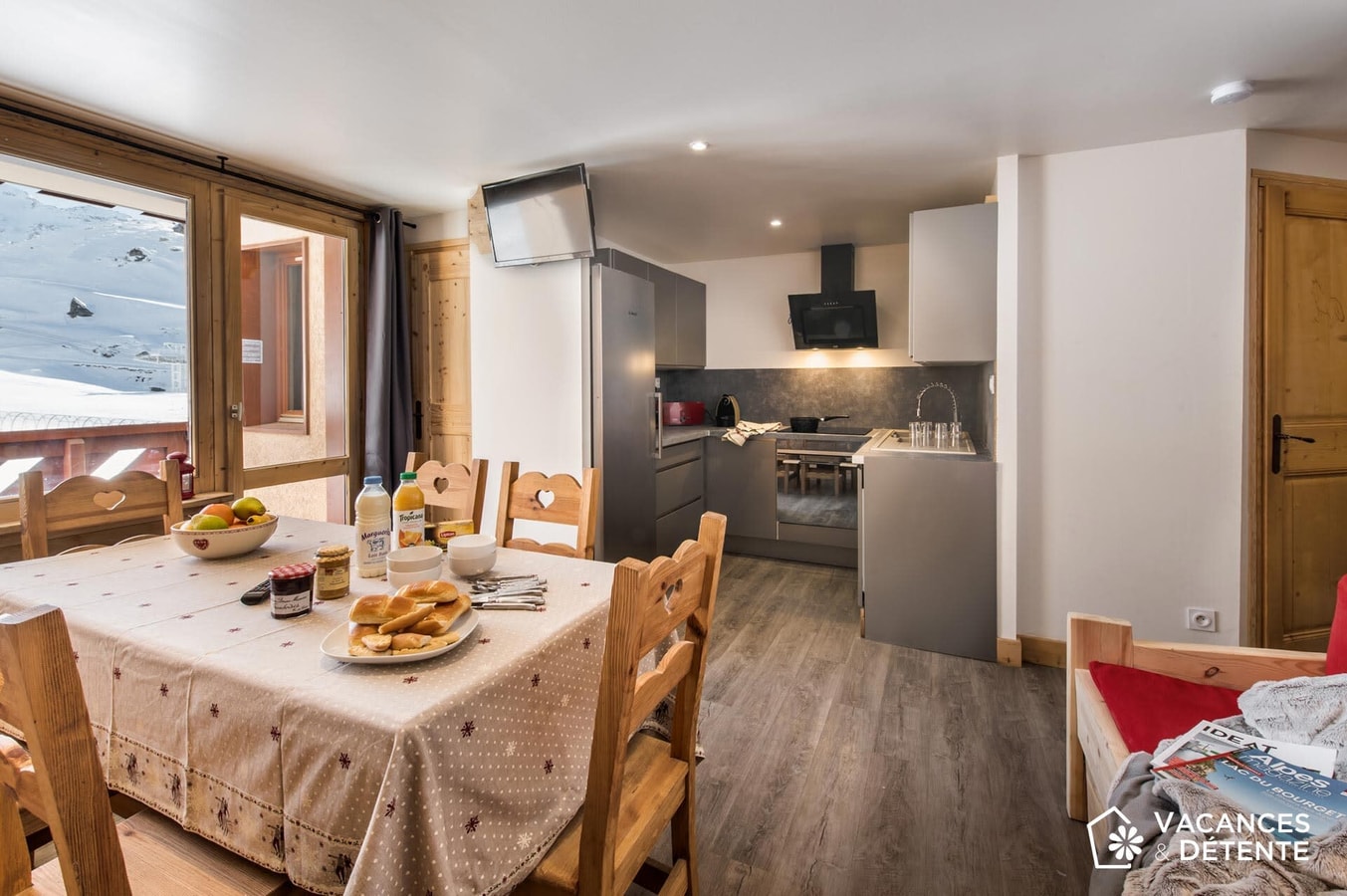 Located on the 7th floor of the residence “Les Temples du Soleil – NAZCA”, the apartment offers a panoramic mountain view and a true ski-in / ski-out location, directly on the slopes in the lower part of Val Thorens, a resort renowned for its sporting excellence and vibrant atmosphere.